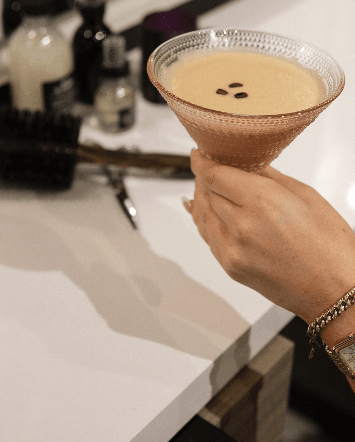 We offer our signature Oomph Tini (espresso martini), the Belle Tini (strawberry espresso martini), mimosas with orange or cranberry juice, red or white wine, soft drinks, still or sparkling water, and coconut water to keep your visit elevated and refreshing. Feel free to ask — yes, you can have a refill.